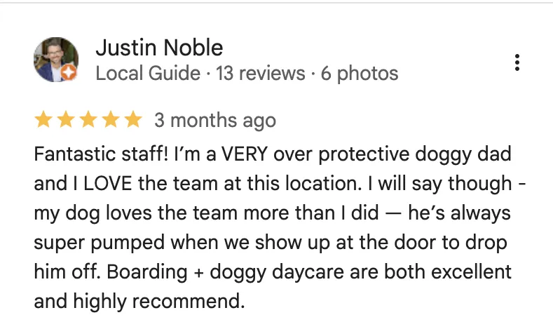 Whether you're curious about daycare, boarding, grooming, or training, our team is happy to help you get started.